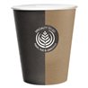 Gobelet en carton pour boissons chaudes, 9 Oz/280 ml avec design bicolore "Cupmatic". Il porte le sceau d'éco-certification PEFC et convient à une utilisation à emporter.